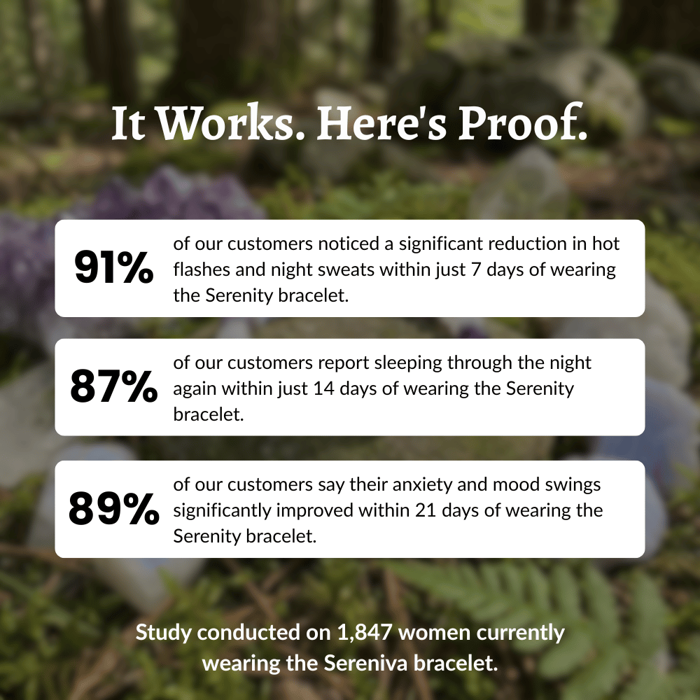 If you're on HRT: Many women wear the Serenity Bracelet alongside their treatment. The stones provide additional support for symptoms that HRT doesn't always fully address — anxiety, sleep quality, mood stability.
